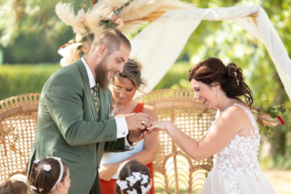 Je capture vos engagements l’un envers l’autre, vos expressions d’amour et de complicité lors des discours, la remise des alliances, les signatures des mariés et des témoins, la sortie d’église…