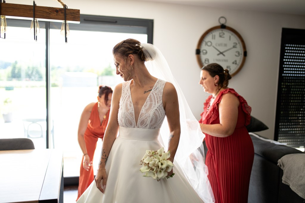 Aujourd’hui vous pouvez me suivre dans le superbe mariage d’Elodie et Auguste, un mariage estivale, avec la présence d’un superbe soleil! Nous avons commencé la préparation des mariés dans un charmant village du Val-Revermont, à Treffort, puis direction la charmante Eglise de ce village fait de pierre! Une fois les consentements de nos deux amoureux réalisés, en route pour le Château des Loges afin d’officialiser cette belle journée! Photos de couple, cocktail, invités…